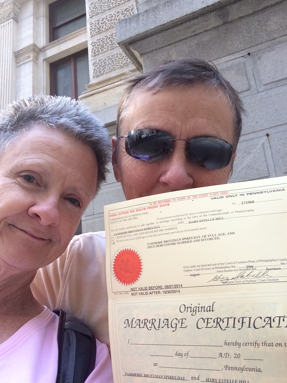 In City Hall, in the exact center of William Penn’s 1682 city plan for Philadelphia, on a warm August day, Tammerie Day and Mary Hill got their certificate to be married, legally, and the world just kept right on turning.